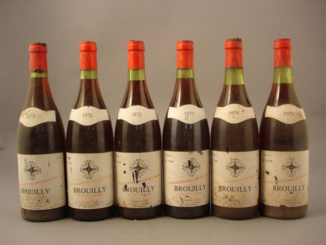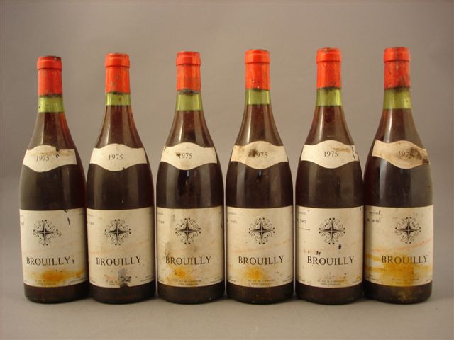 BROUILLY, 1975. 18 bouteilles (1 très légèrement basse, 4 moyennement basses). Étiquettes légèrement sales.