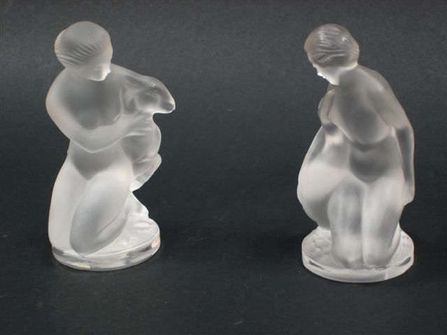 Nymphe au caprin. STATUETTE en cristal moulé dépoli. Signée à la molette.