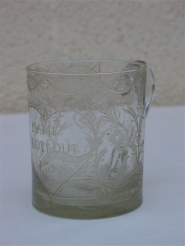 CHOPE en cristal-verre? à décor gravé de fleurs et entrelacs. Inscriptions dans un coeur "Marie Rotrout 1792".