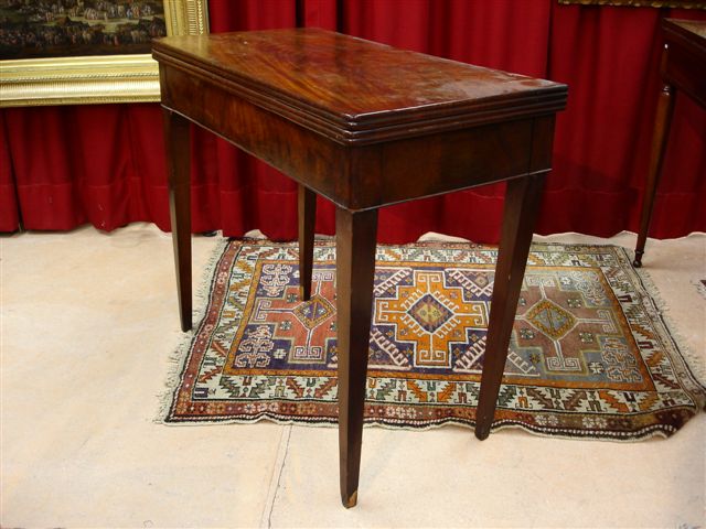 TABLE à JEUX en acajou et placage d'acajou. Plateau mouluré sur la tranche. Pieds en gaine.
