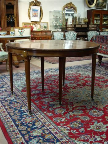 TABLE ovale à allonges médianes reposant sur six pieds fuselés de section ronde.
