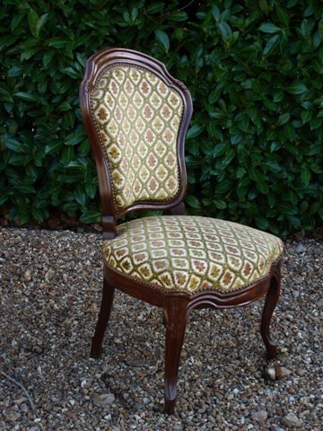 CHAISE en acajou mouluré et placage d'acajou. Dossier cabriolet et pieds antérieurs cambrés.