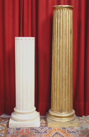 Deux COLONNES cannelées: l'une en stuc doré (Haut. 121,5 cm.), l'autre en plâtre (Haut. 91 cm.)