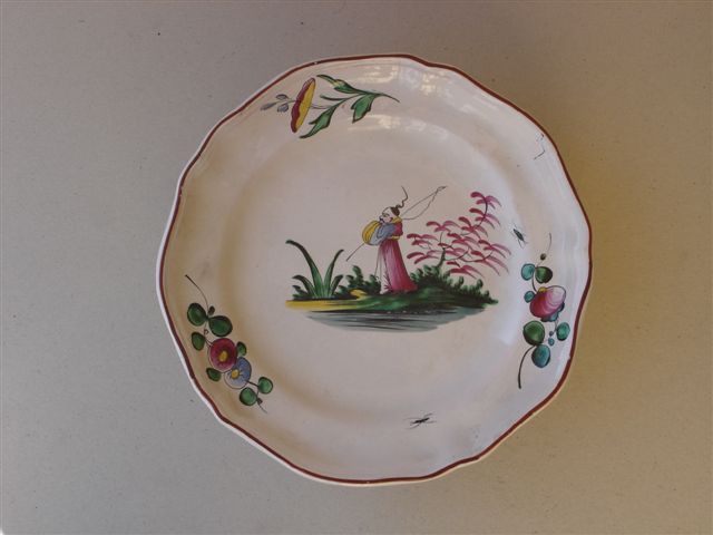LES ISLETTES - PLAT rond en faïence de petit feu à décor "au chinois".