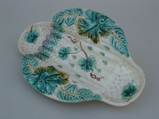 SALINS - PLAT à asperges en faïence barbotine. Extrémités simulant une vannerie.