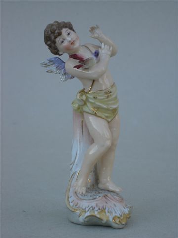 E. BOHNE Fils RUDOLSTADT (Thuringe) - "Amour à la colombe". SUJET en porcelaine polychrome. Marque en bleu.