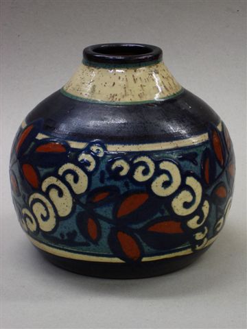 QUIMPER, ODETTA - VASE pansu à décor floral géométrique polychrome.