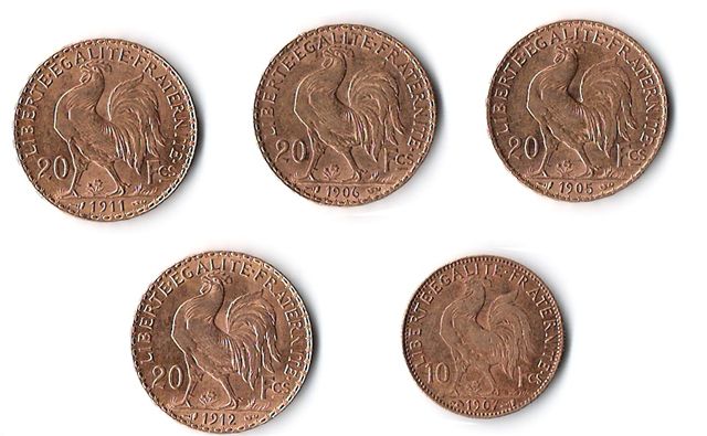 Lot: 3ème République, 4 pièces de 20F, 1905, 1906, 1911