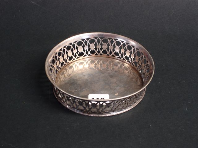 DESSOUS de CARAFE en argent à galerie évasée et ajourée d'ovales et losanges alternés et de fleurs stylisées. Bordure à profil mouluré.