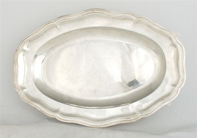 Grand PLAT ovale en argent à décor de moulures et filets. Paris 1782-1783. Poids 1.935 g.