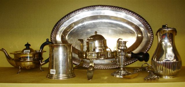 Lot en métal argenté: RÉCHAUD ancien, COUVERTS, PLAT ovale à décor de godrons.