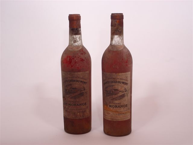 Domaine de MORANGE, Sainte-Croix-du-Mont, 1er grand cru, J. Mauriac propriétaire, 1947. 2 bouteilles (niveaux en bas du goulot / haut de l'épaule, étiquettes sales).