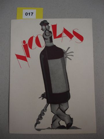 TARIF NICOLAS 1927 (?) Pet. in-8, le personnage de Nectar émergeant d'une bouteille et appuyé sur un tire bouchon.