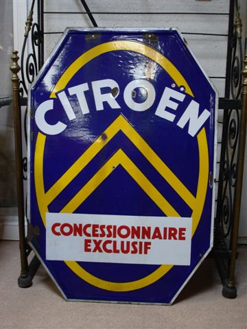 PLAQUE de PUBLICITÉ Citroën octogonale, émaillée en bleu, jaune et violet sur les deux faces. (acctdts)