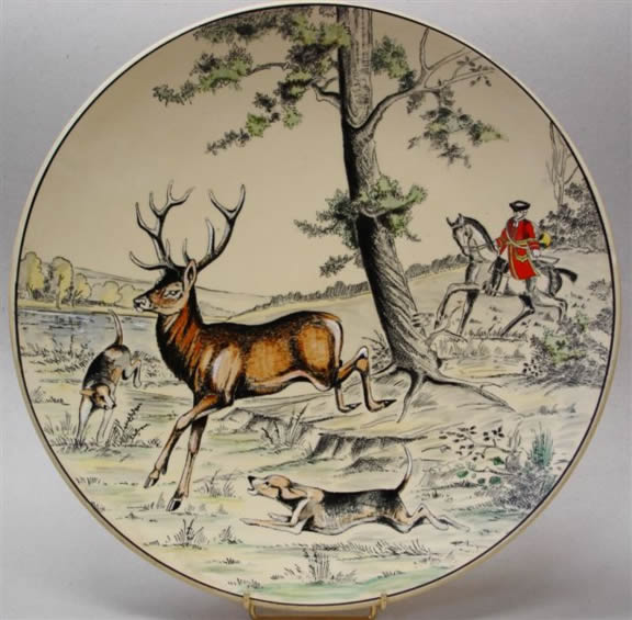 LONGWY - Grand PLAT orné d'une scène de chasse à courre, création de Paul MIGNON.
