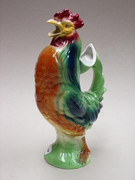 SAINT-CLÉMENT - BROC en forme de coq en faïence polychrome.