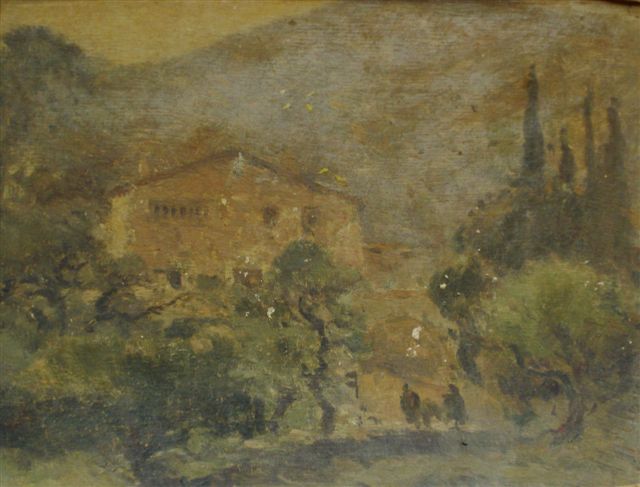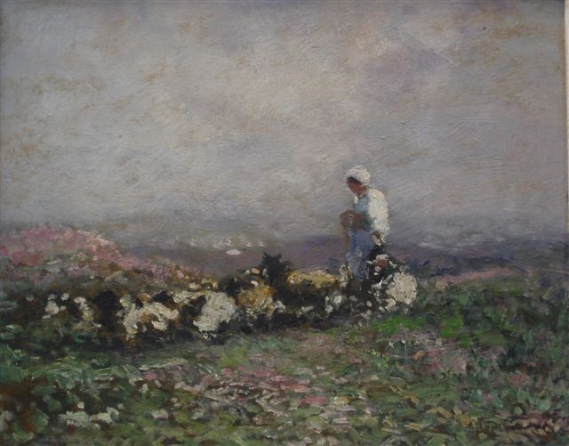 Bergère et son troupeau, sur l'autre face: Paysage et promeneurs.