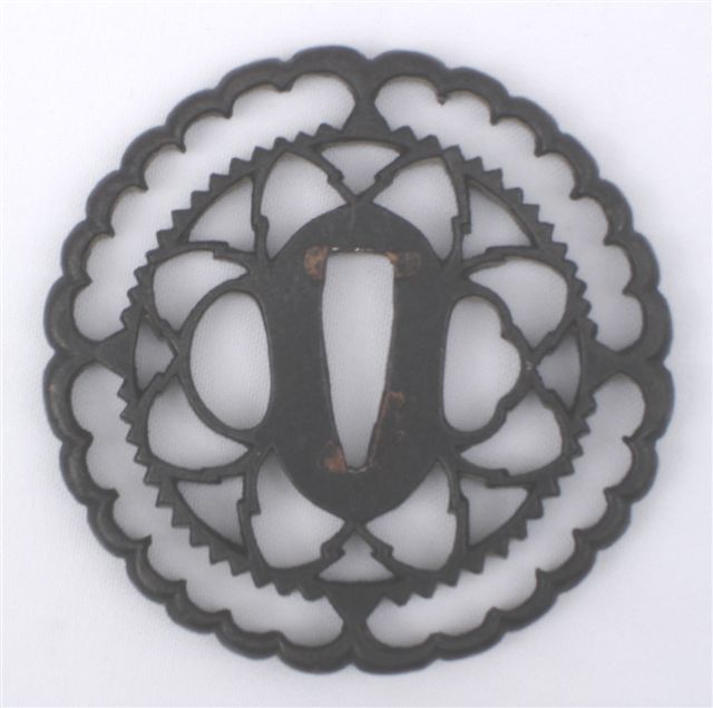 KIKU-GATA en fer, décorée en yô-sukashi d'un motif floral.