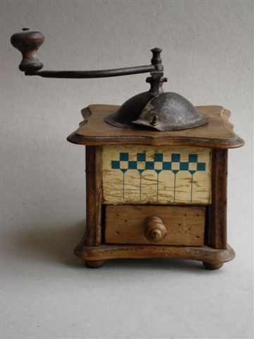 JAPY Frères. Modèle en bois à bords coutournés. Décor imprimé sur carton collé, de motifs géométriques bleus.
