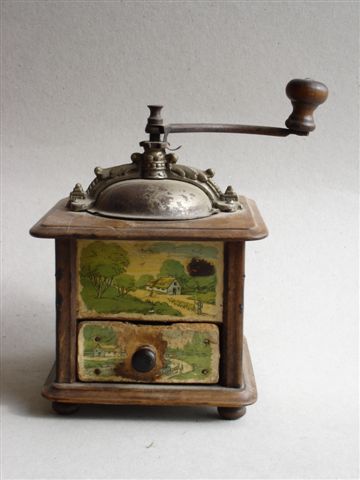 JAPY Frères. Modèle en bois à quatre colonnes en balustre. Décor imprimé de paysages de campagne.