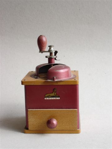 GRULET. Modèle et tôle bordeaux et bois.Haut. 19 cm.