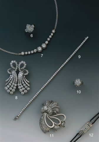 CLIP noeud de forme mouvementée en or gris entièrement serti de diamants ronds d'environ 1 carat et de quelques diamants baguettes.