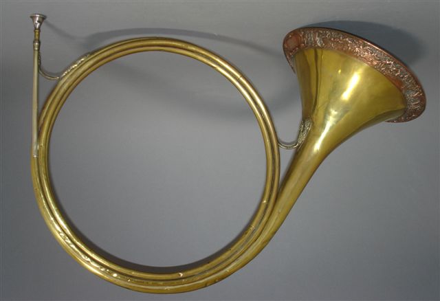 TROMPE de CHASSE, dite d'ORLÉANS à trois tours et demi . Embout argent.