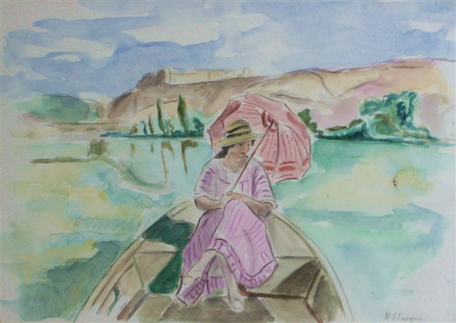 Mademoiselle Lebasque, dite Nono, fille de l'artiste - en barque.