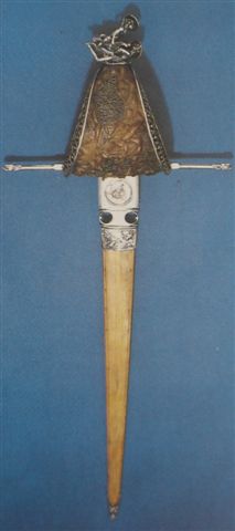 Le décor de cette plaque unique est à rapprocher de la composition des Portes de l'Enfer de Rodin. Par sa forme et son décor, cette plaque s'identifie au pommeau de garde de la dague de main gauche en argent, corne et acier, créé par René Lalique en 1901 exposé au Salon de la même année et présenté à Londres, en 1905, chez T. Agnew and Sons.