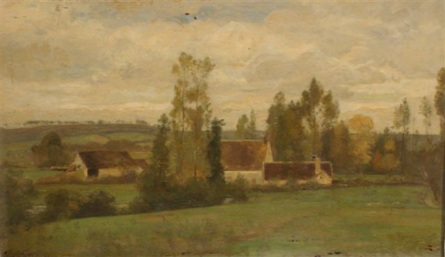 Eugène LAVIEILLE. "Bretoncelles (Orne)". Huile sur panneau. Signée en bas à gauche. 35,5 x 58 cm.