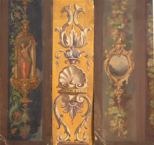 Adrien LAVIEILLE. Lot de documents en relation avec les travaux exécutés pour les Gobellins en 1894, 1896 et en 1902-1903 au Palais de Justice de Rennes. Photographies, études (feuilles d'acanthes, d'orangers, bouton d'or, etc.), article de journal, trois études à l'huile de cartouche et d'ornementation murale.