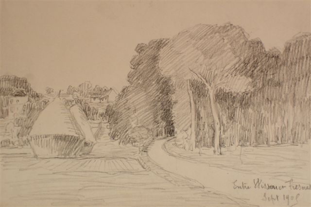 Adrien LAVIEILLE. 39 dessins tirés de carnets d'esquisses de l'artiste: paysages de campagne, études d'arbres, éléments d'architecture. Réalisés entre la fin du XIX et le début du XXème siècle à Paris, en région parisienne, touraine, vendômois, Bretagne. Crayon et fusain. Certains sont signés datés et légendés.