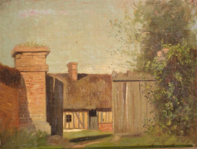 Adrien LAVIEILLE. Entrée de ferme. Huile sur toile. Signée en bas à droite. 24,5 x 32 cm.