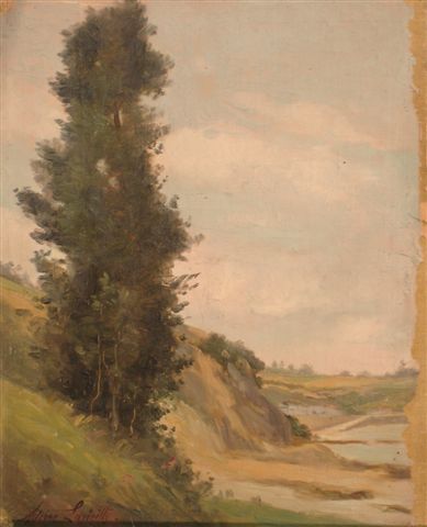 Adrien LAVIEILLE. Berges. Huile sur toile. Signée en bas à gauche. 31 x 25 cm.