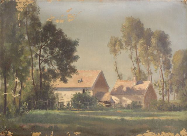 Adrien LAVIEILLE. Ferme par beau temps. Huile sur toile. Signée en bas à gauche. En l'état. 30 x 40 cm.