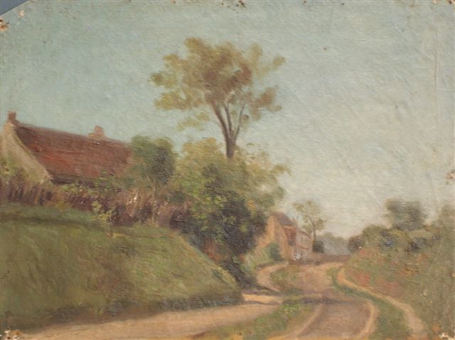 Adrien LAVIEILLE. Chemin près du village. Huile sur toile. 23 x 30 cm.