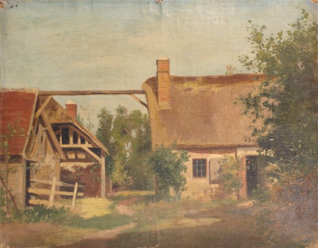 Adrien LAVIEILLE. Une cour de ferme. Huile sur toile. Signée en bas à droite. 30 x 39 cm.