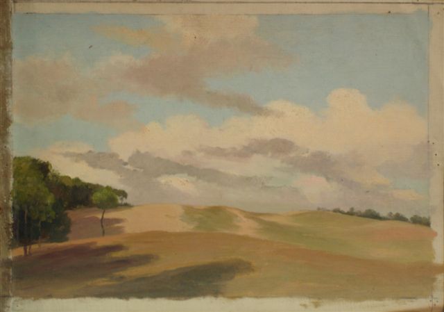 Adrien LAVIEILLE. Ciel sur labours. Huile sur toile. 27 x...