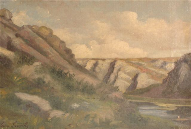 Adrien LAVIEILLE. Vallée encaissée dans les rochers. Huile sur toile. Signée en bas à gauche. 27 x 37,5 cm.