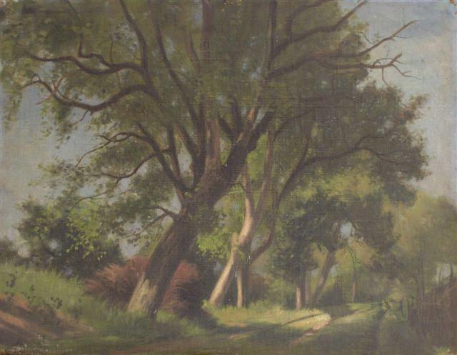 Adrien LAVIEILLE. Chemin bordé d'arbres. Huile sur toile. Signée en bas à gauche. 31 x 40 cm.
