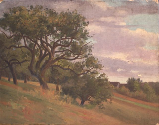 Adrien LAVIEILLE. Arbres sur une pente douce. Huile sur toile. 31 x 40 cm.