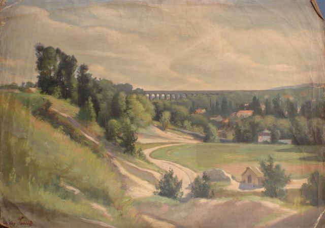 Adrien LAVIEILLE. Paysage à Arcueil. Huile sur toile. Signée en bas à droite. 35,5 x 49 cm.
