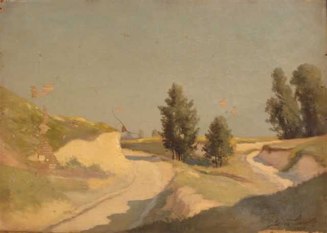 Adrien LAVIEILLE. Chemin dans la campagne et affleurements de pierre calcaire. Huile sur toile. Signée et datée 1896 en bas à droite. 31 x 40 cm.