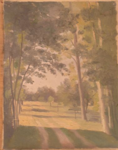 Adrien LAVIEILLE. Chemin sortant du bois. Huile sur toile. 30...
