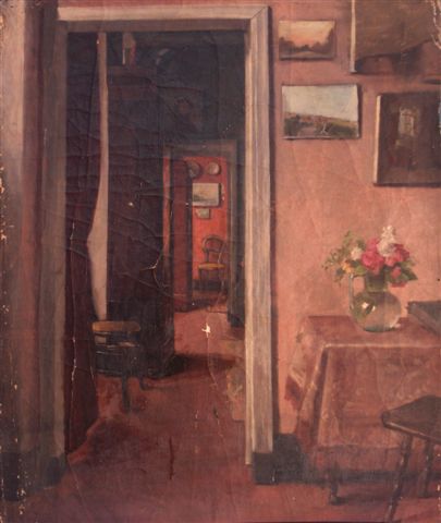 Marie-Adrien LAVIEILLE. 22, rue des fossés Saint Jacques: un coin du salon. Huile sur toile. 55 x 44 cm.