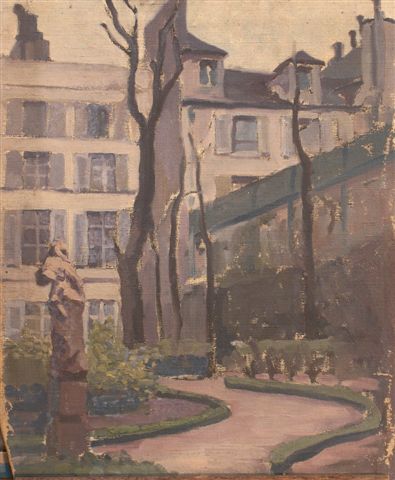 Marie-Adrien LAVIEILLE. Le Jardin au 22, rue des Fossés Saint Jacques. Huile sur toile. 46 x 38 cm. Étiquette au dos.