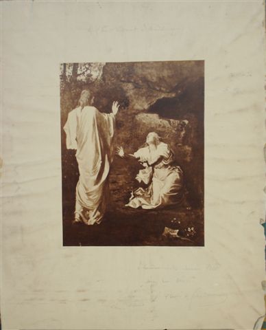 MICHELER. Photo du tableau "Le Christ apparait à Madeleine" de Pierre Puvis de CHAVANNE" et dédicacée par le peintre "à Mademoiselle Marie PETIT son bien dévoué P. Puvis de CHAVANNE". 29 x 23 cm.