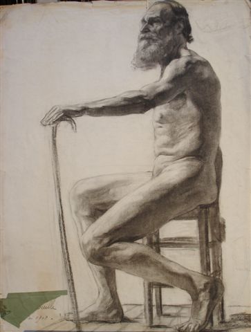 Andrée LAVIEILLE. Huit études de nus antiques, réalisées dans l'atelier de M. HUMBERT entre 1908 et 1910. Cinq portent le cachet "Ecole National des beaux arts, concours d'émulation." Au revers est indiqué l'atelier, le nom de l'élève et la date. 63 x 47 cm.