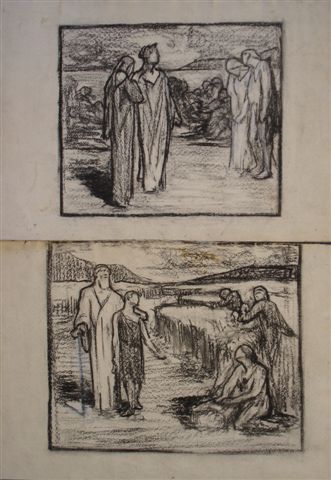 Andrée LAVIEILLE. Lot de sept études au crayon et fusain. Paysages, nu, scènes paysagées.