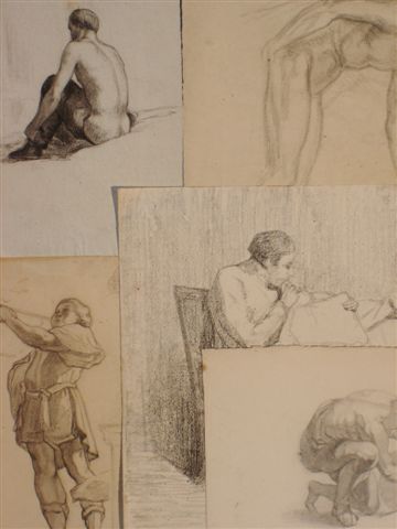 Andrée LAVIEILLE. Lot de treize études au crayon à l'encre et au fusain.